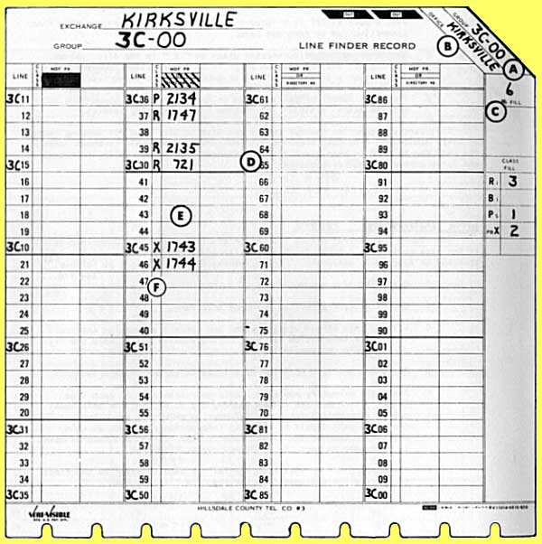 the directory (or cable pair) number connected to each line finder. Block